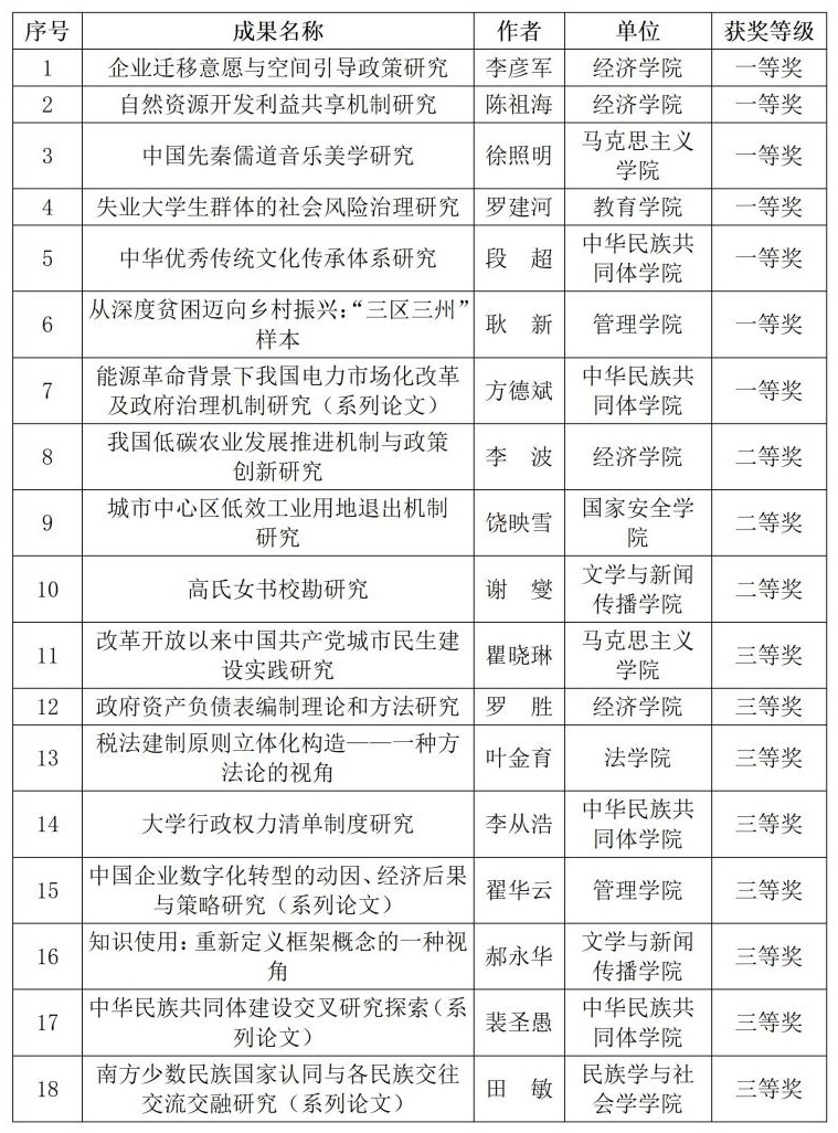 This abundant harvest of provincial social science outstanding achievement award is not only authoritative recognition of the academic contributions of our scholars but also strong evidence that the overall level of philosophy and social sciences research at the university has entered the“first echelon”of provincial universities. It marks a major breakthrough made by the university in serving national strategies, particularly in advancing theoretical innovation and practical exploration around the main line of forging a strong sense of the Chinese national community.