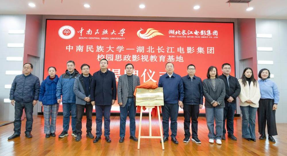 On the afternoon of November 18, SCMU and Hubei Yangtze River Film Group Co., Ltd. held the signing and unveiling ceremony for the establishment of a campus ideological and political film education base through university-enterprise collaboration at the Academic Exchange Center. Attendees included Zhu Yulong, Secretary of the Party Committee and Chairman of Hubei Yangtze River Film Group Co., Ltd., Xie Yun, Deputy Secretary of the Party Committee and General Manager of the group, and relevant leaders of Hubei Yinxing Cinema Line. Representing SCMU were Xu Yeqin, Secretary of the Party Committee, Ma Yutang, Standing Committee Member of the Party Committee and Vice President, along with heads of relevant departments and representatives of teachers and students. The ceremony was presided over by Ma Yutang.